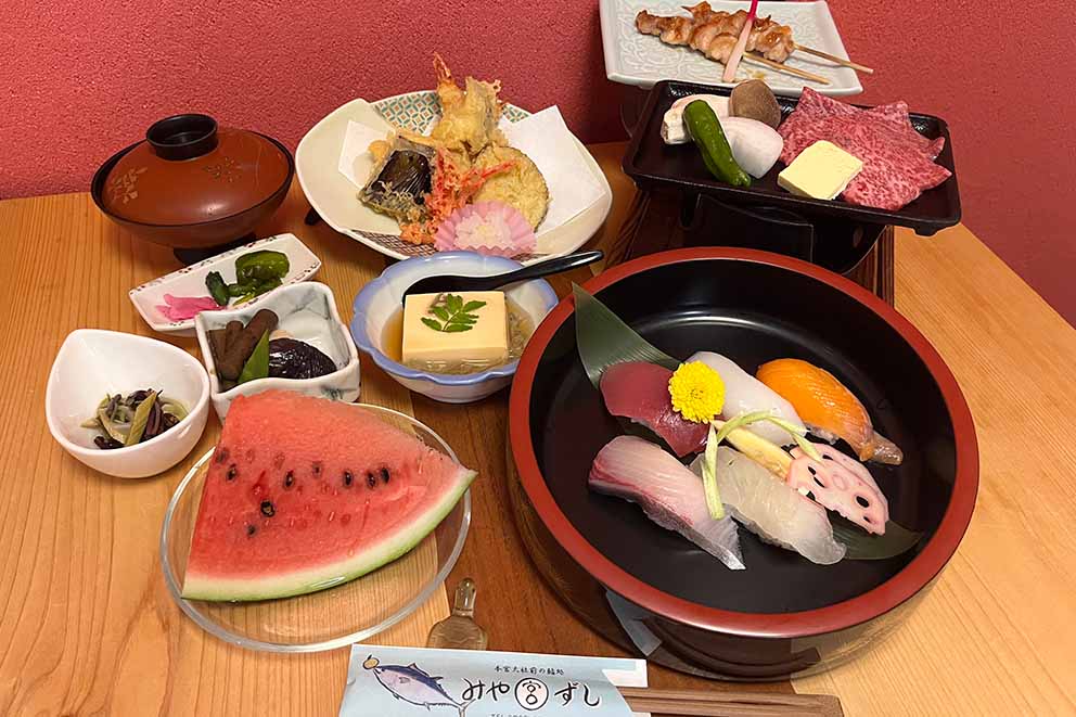Dinner will be served at Miyazushi, a 2-minute walk away, and a morning breakfast box will be delivered by another local restaurant.