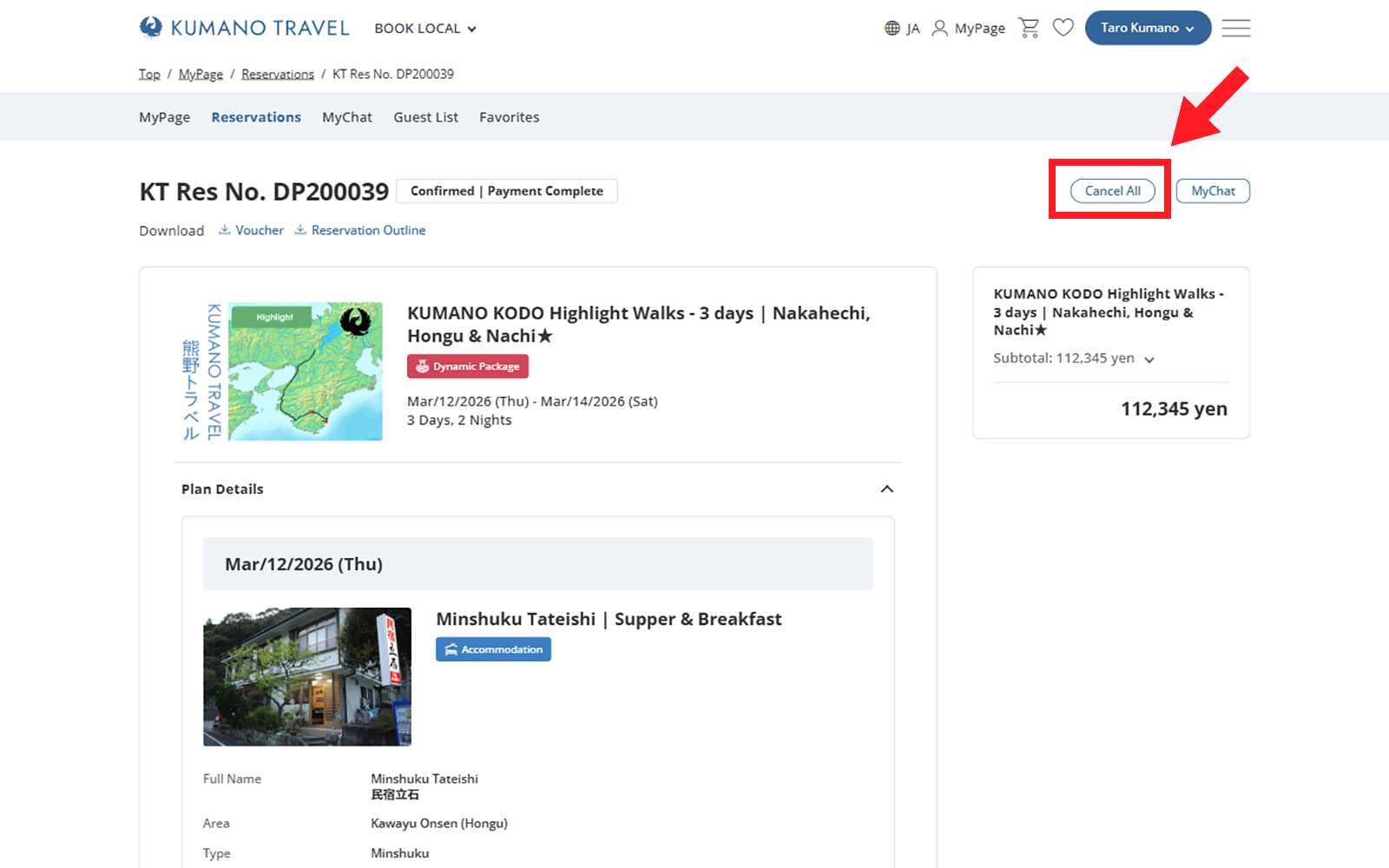 NOTE: It is important to please keep all e-mails exchanged with KUMANO TRAVEL for verification if needed.