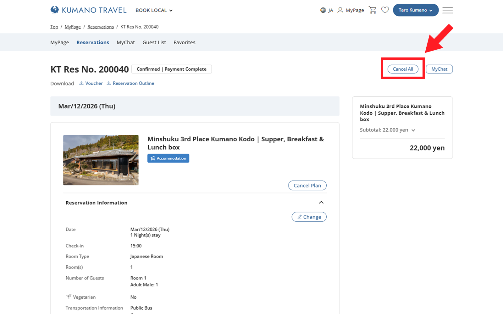 All guests who make a booking through KUMANO TRAVEL can submit a rating and review for the products and services that they experienced.