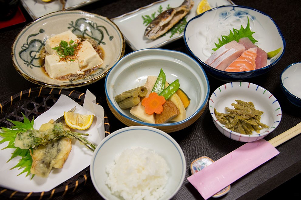 お食事は自家製野菜や天然鮎など地元で採れた新鮮な食材が味わえます。