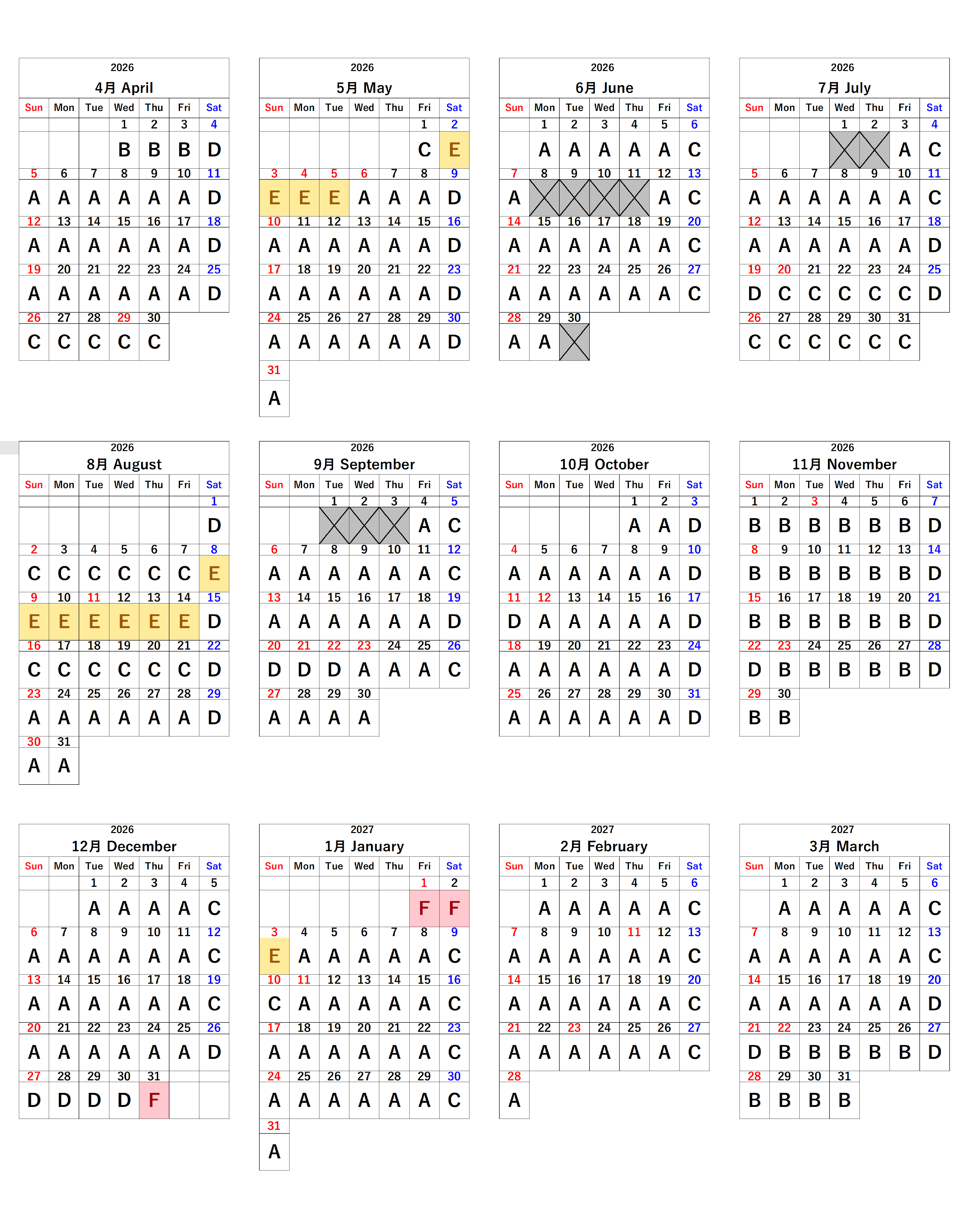 下記カレンダーと料金表にてご確認のうえ、お申込みください。